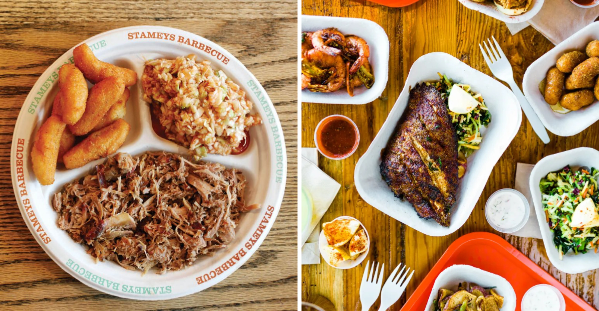 Since 1930, Stamey’s Barbecue in Greensboro has been a Piedmont anchor. Generations of families continue to savor the hickory-smoked pork shoulders with vinegar-tomato dip. Red slaw and hushpuppies complete the meal, drawing locals back for “the real thing.” This restaurant thrives on legacy, with no need for flashy marketing. It’s where community and tradition blend seamlessly, creating a cherished dining experience.
