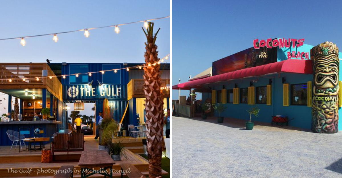 You come for the turquoise water and stay for the ultra relaxed vibe. The Gulf fuses shipping container chic with palm trees and soft sand underfoot, so you can graze on Gulf shrimp while boats glide by. Order at the counter, grab a picnic table, and let the sea breeze do the rest.