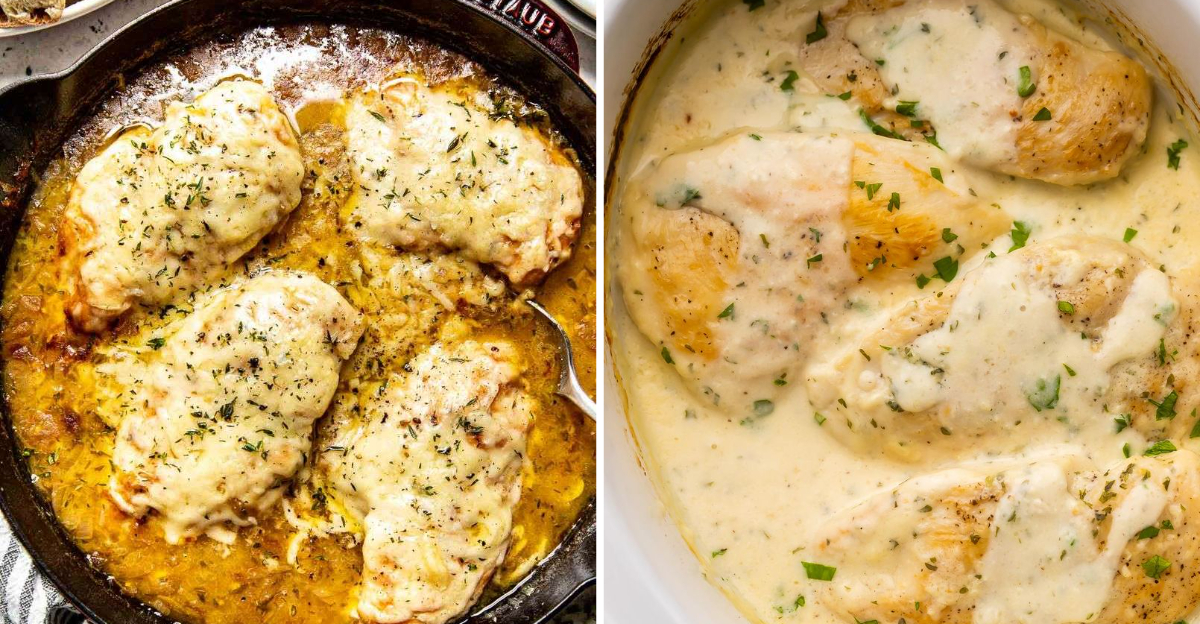 If you love French onion soup, this brings those vibes to dinner. Onions caramelize into jammy sweetness while chicken turns tender underneath.