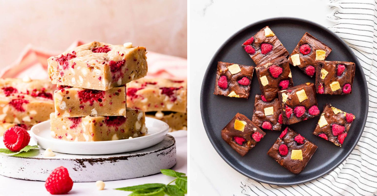 Meet the blondie that turns heads at first bite. Tart raspberries cut through the sweet, buttery base while white chocolate chips melt into creamy pools.