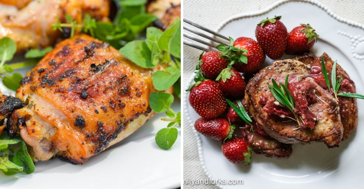 Thick-cut pork chops meet a sweet-tangy strawberry balsamic glaze that screams spring. The fruit caramelizes over the flames, creating a sticky sheen with big flavor.