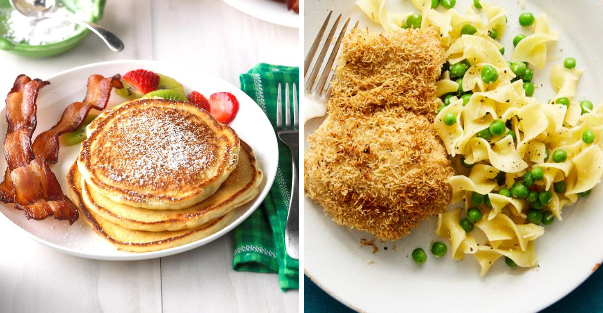 11. Breakfast-for-dinner (pancakes, eggs, bacon)