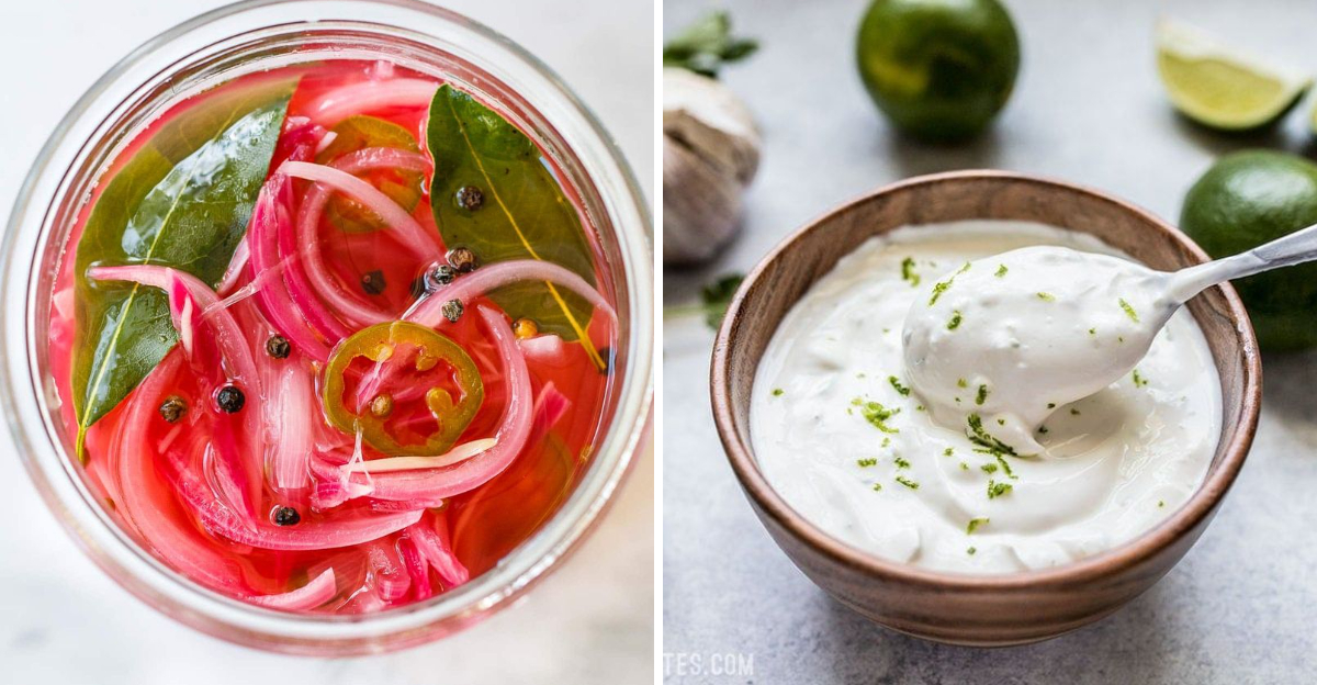 Stir sour cream or Greek yogurt with lime juice, salt, and a tiny garlic grate. It becomes silky, tangy, and ready to drizzle.