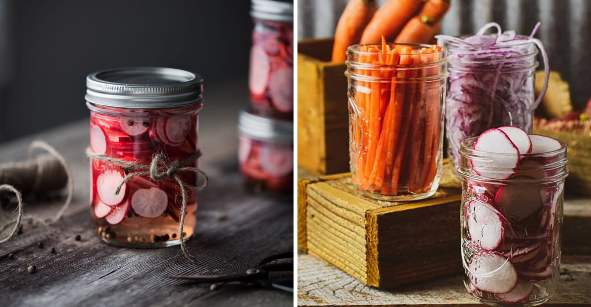 Red onions turn neon pink and taste incredible on everything. Radishes get zippy.