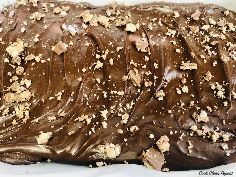 Pour remaining mixture on top of candy and evenly smooth out